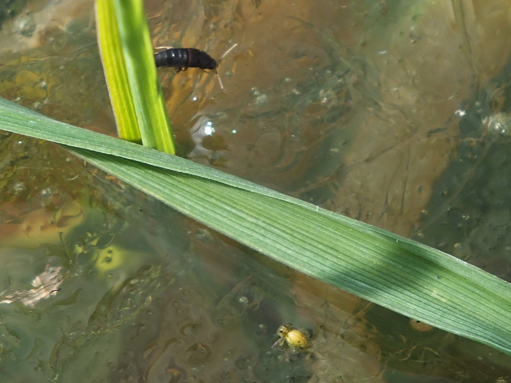 Il primo carabide nuotatore sembra (?) un Agonum sordidum gridellii. Il secondo onestamente potrebbe essere un po' di tutto, lì c'è il Pterostichus macer, ma anche molti Harpalini gli somigliano.