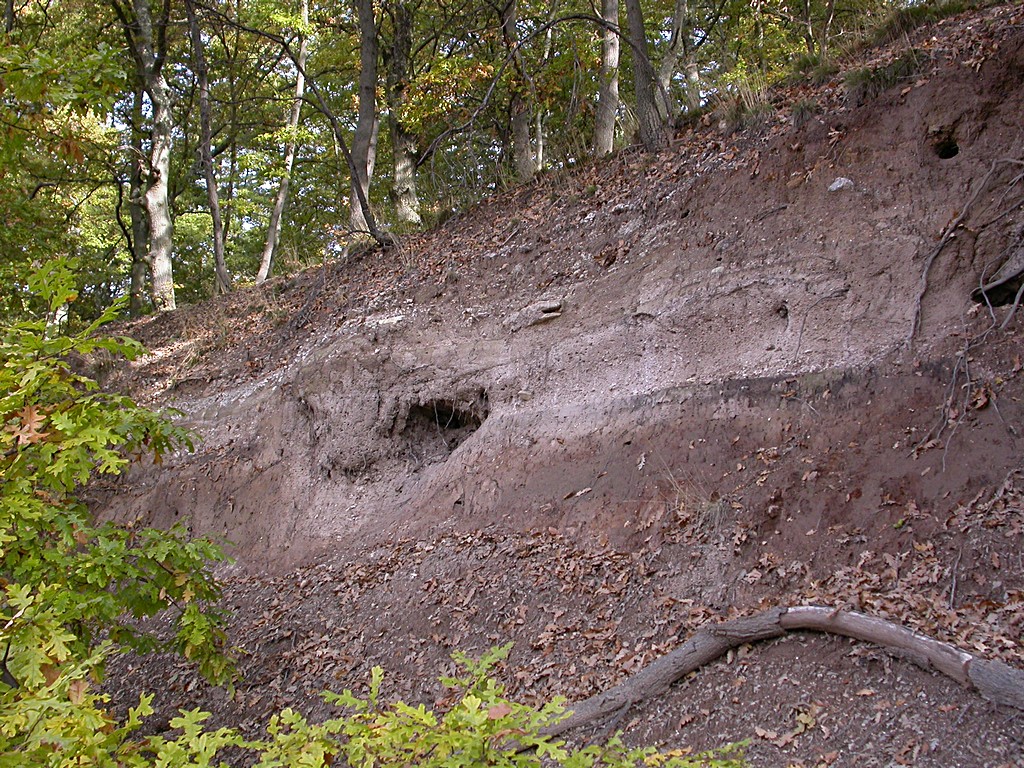 No, gli strati di tufo (e pomici), Lo strato di terra si è formato dopo, con la disgregazione del tufo e lo sviluppo della vegetazione.