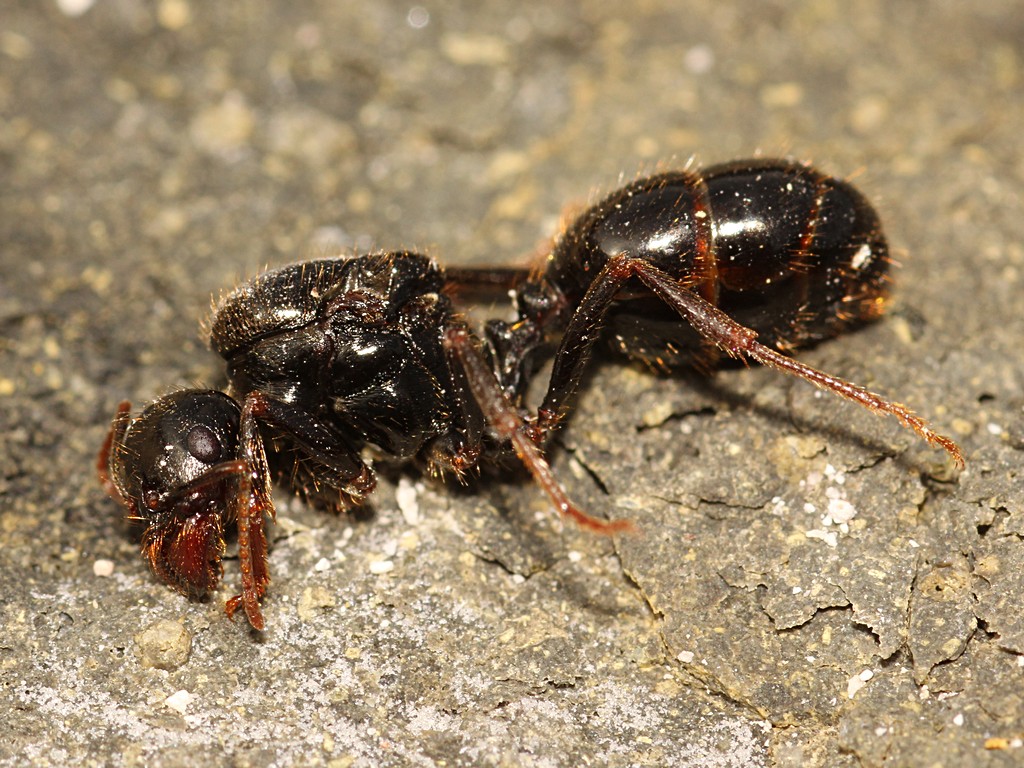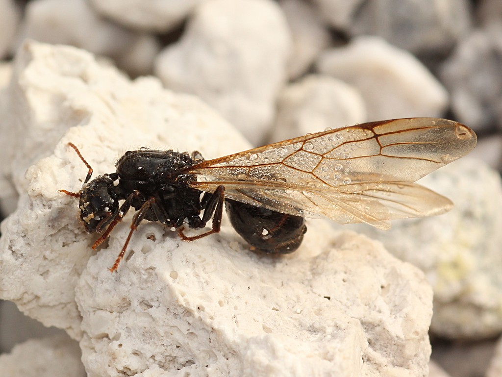 Tra questi, ci sono diverse formiche alate od ex-alate, che inutilmente hanno cercato di scavarsi un cunicolo nel "terreno" e sono morte o agonizzanti.