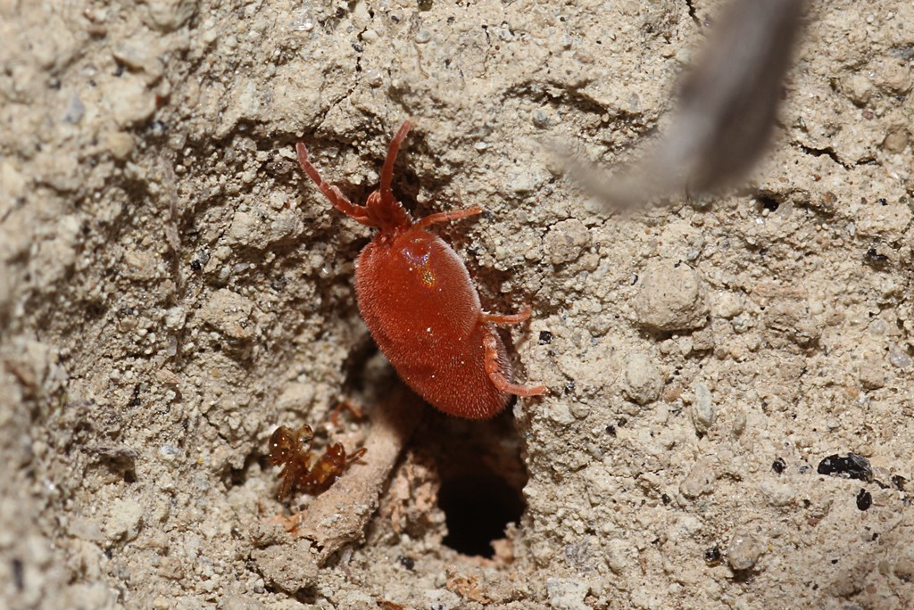Infatti era pieno di questi grossi acari, che gironzolavano sulla scarpatina ed entravano ed uscivano dai fori degli imenotteri