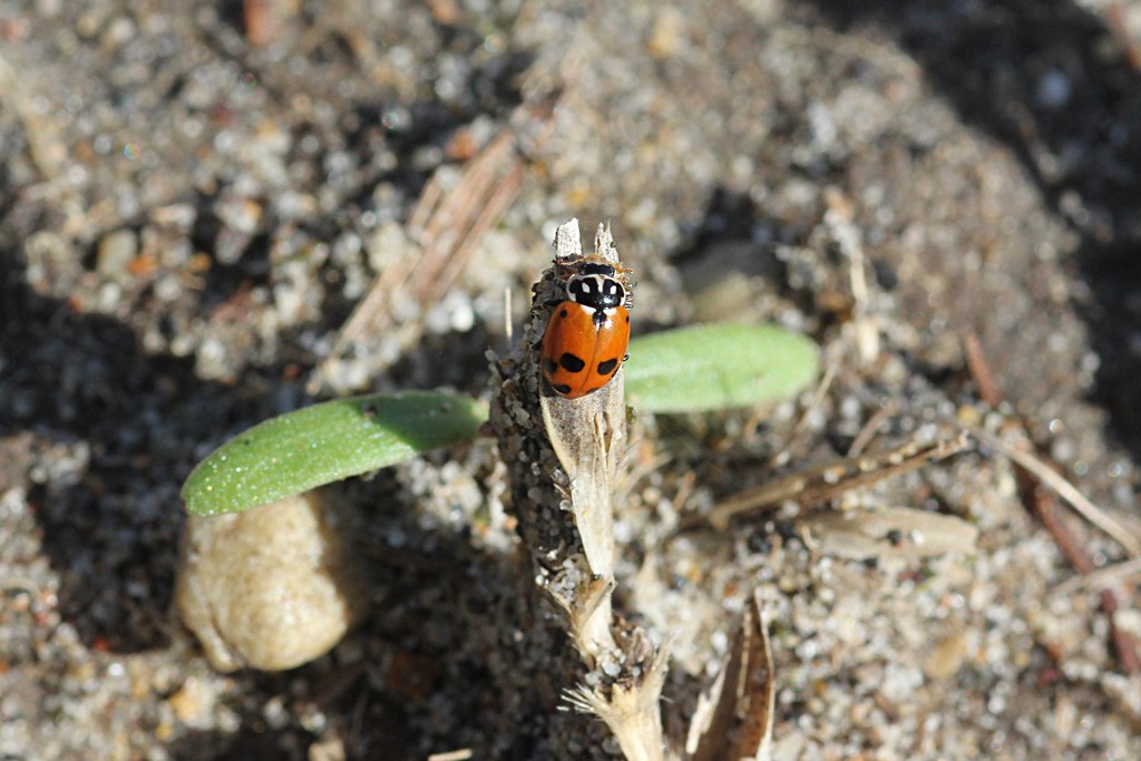 L'ho lasciato campare. Probabilmente è il melanocephalus, che lì è frequente. Ho raccolto solo alcune cose: le Chrysolina (anche in alcool per il progetto barcoding), i Curculionidi più interessanti e poco altro (ovviamente anche la mutillona per Marcello). Poco prima avevo già preso un sacco di Pselafidi, Anthicidi, piccolissimi Carabidi, ecc. nel detrito vicino alla spiaggia, ed ho già troppo materiale da preparare, che resterà nei barattoli per i prossimi anni.