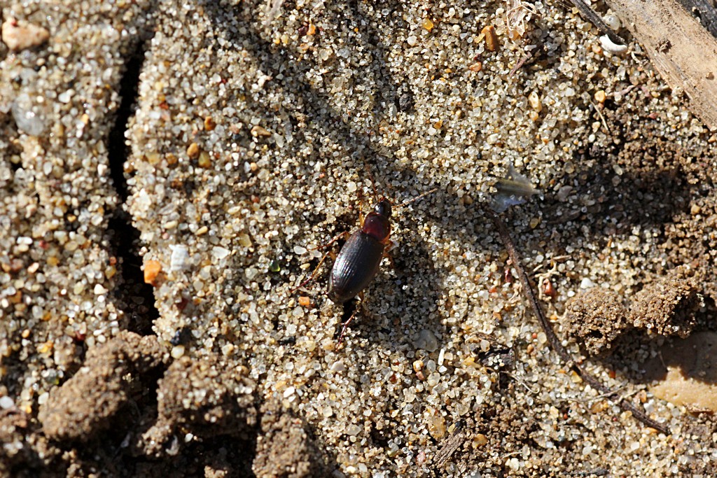 Carabidae di pochi mm che cercava di nascondersi all'ombra di una zolla di qualche cm