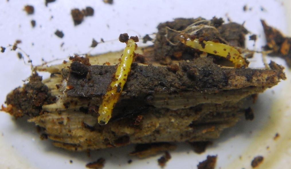 Infine un Scaphidema metallicum, un carabide (o due :roll: ) e alcune larve..sapreste indicarmi di cosa sono per favore? Grazie mille!