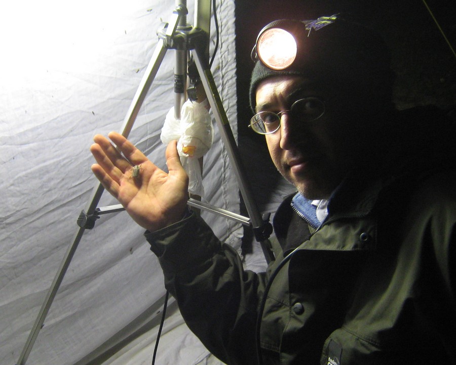 In un tronco di ontano marcio al punto giusto troviamo dei Dorcus musimon Gené, 1836, adulti e larve, poi delle Uloma rufa (Piller & Mitterpacher, 1783) e Uloma culinaris (Linnaeus, 1758), alcuni Ampedus, dei Lacon punctatus (Herbst, 1779), e uno Scydmaeninae per Honza. Facendo cadere al suolo un ramo morto attaccato ormai dalle termiti da un vecchio leccio troviamo alcuni Probaticus ebeninus ebeninus (Villa, 1838). In breve tempo arriva il tramonto e torniamo all’auto a prepararci per la caccia al lume. Alle 20.30 accendiamo, rapidamente la temperatura cala, e ci ritroviamo dalle maniche corte alle felpe in pail e giubbotto. Iniziano ad arrivare le farfalle (che mostrerò in seguito) e qualcun altro ci visita al telo. Un Hydrous pistaceus Laporte de Castelnau, 1840 uno stafilinide Deleaster dichrous (Gravenhorst, 1802) det. Honza (  ) un Dytiscus pisanus Laporte de Castelnau, 1835