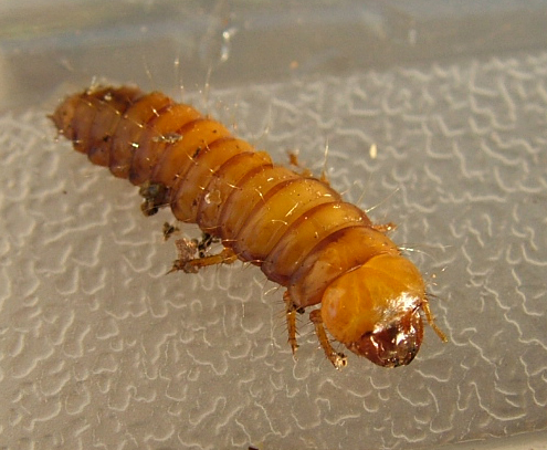 Ecco una larva di Trogossitidae: Temnochila caerulea .