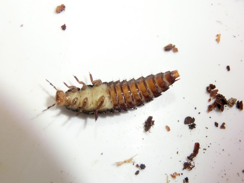 Diverse larve in metamorfosi sotto pietre in bosco umido a bordo ruscello.