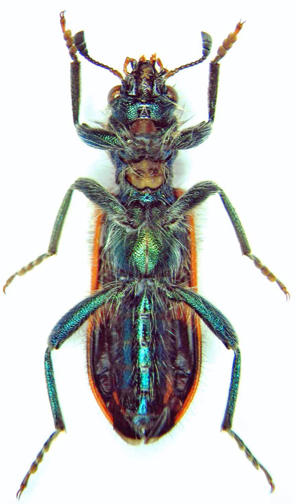 ha anche l'elitra destra assimetrica, circa mezzo mm. piu' lunga della sx.