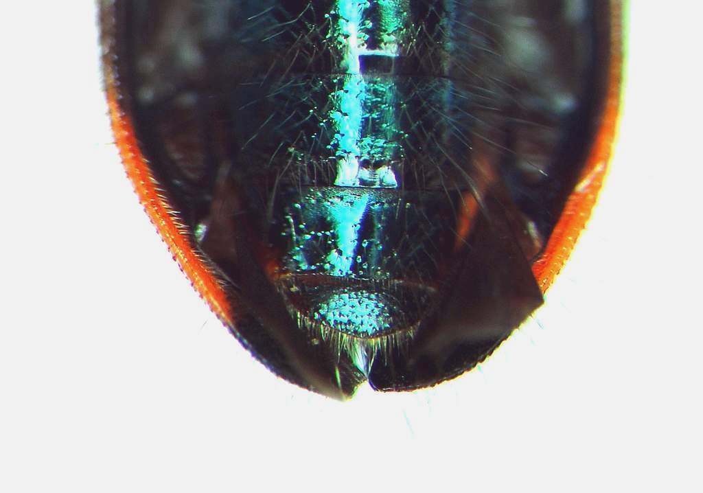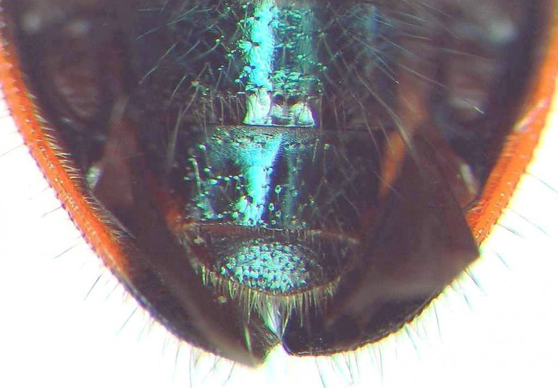 Mi sono dimenticato di dirti che dalla foto di tutto l'esemplare sembrava che l'VIII sternite addominale finisse a punta. Ma pensa te!! E' l'ala destra che chiude parzialmente la sutura elitrale e la luce che entrava nel foro.........