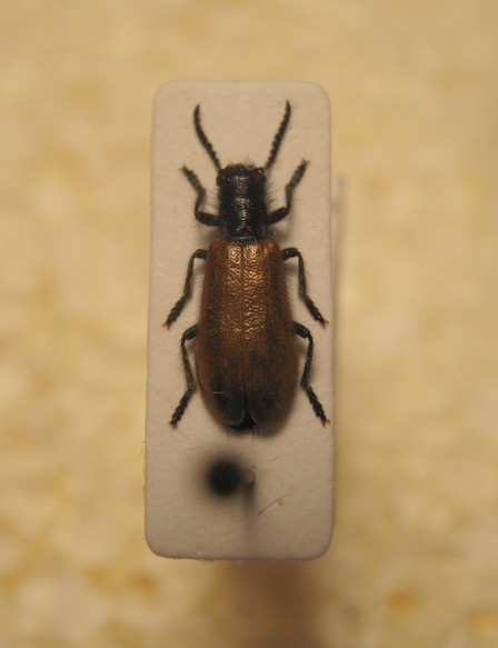 Per ora mi è uscito solo questo bel cleride (il prelievo mi ha già soddisfatto :ok: ) che, dopo una mia maldestra descrizione a Iuri Zappi, mi ha detto poter essere un Tillus pectinicornis, aspetto ovviamente la sua conferma sul forum (gli ho mandato una mail per avvisarlo di questa discussione).