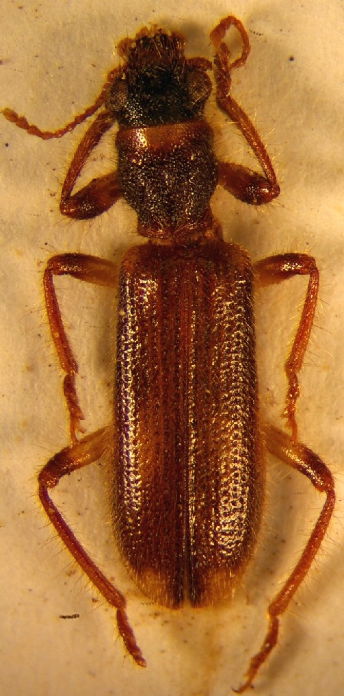 Anche a Lampedusa, come a Pantelleria, sembra essere presente Opilo domesticus, a giudicare da questo esemplare, trovato morto in un contenitore dove avevo tenuto rametti di Ficus carica portati con me da quell'isola.