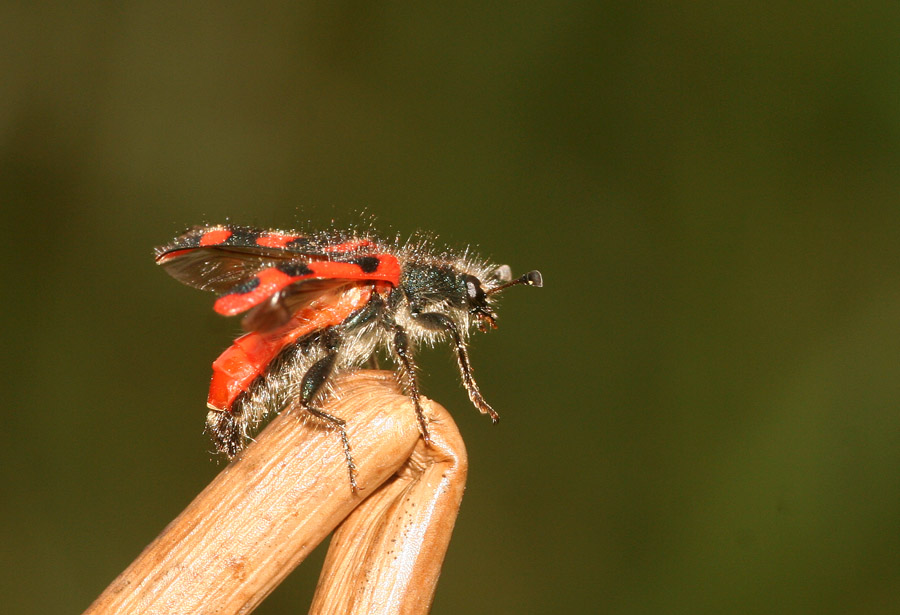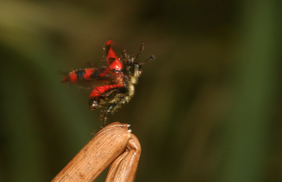 Ne approfitto per chiederti una cosa: anni fa nel SW della Turchia, monti a NE di Fethiye, se non ricordo male il nome, ho trovato un paio di Trichodes grandi come crabroniformis, ma di un bel giallo vivo con fasce nere o blu scuro (è passato qualche anno) e sono riuscito a farmeli scappare tutti e due (era l'ultimo giorno di un mio viaggio solitario, ero stanco e con un alluce fratturato che mi costringeva a saltellare su un piede solo, ed il giorno precedente lo avevo passato correndo continuamente in bagno causa chissà quale schifezza che avevo mangiato). Sempre che non fosse un'allucinazione, sai che cosa poteva essere? Una varietà cromatica di crabroniformis o un'altra specie?