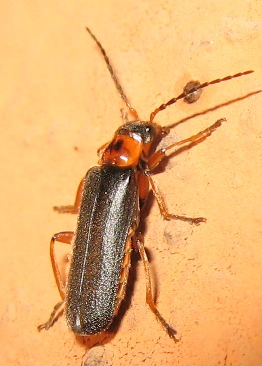 Il capo scuro farebbe propendere la mia scelta su una Cantharis livida, ma lo strano disegno rassomigliante a due triangoli sul torace non l'avevo mai riscontrato in altri esemplari...