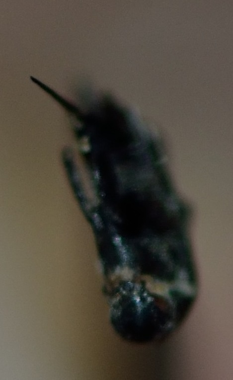 Un amico ha trovato questo piccolino (intorno al mezzo millimetro). Sinceramente dubito anche sull'ordine. Quella protuberanza terminale sembra una specie di furcula per saltare a scatto, eppure non mi pare un collembolo.