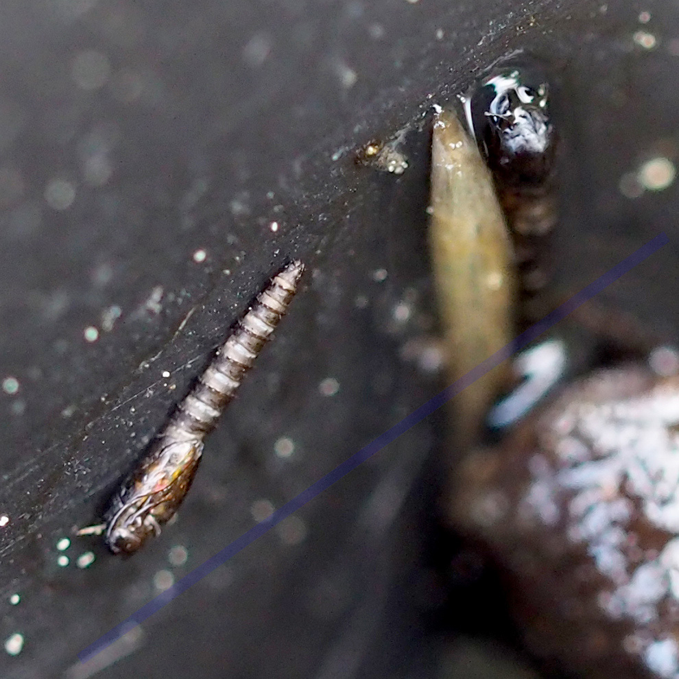 Per le altre mi sento di escludere i Chironomidae, per le dimensioni, colore, e assenza di prozampe (si dovrebbero osservare dettagli più minuti, come ad es. gli spiracoli anteriori e posteriori), ma non mi sento neppure di confermare definitivamente Ceratopogonidae dato che non corrispondono agli habiti tipici di questa famiglia :oops: .