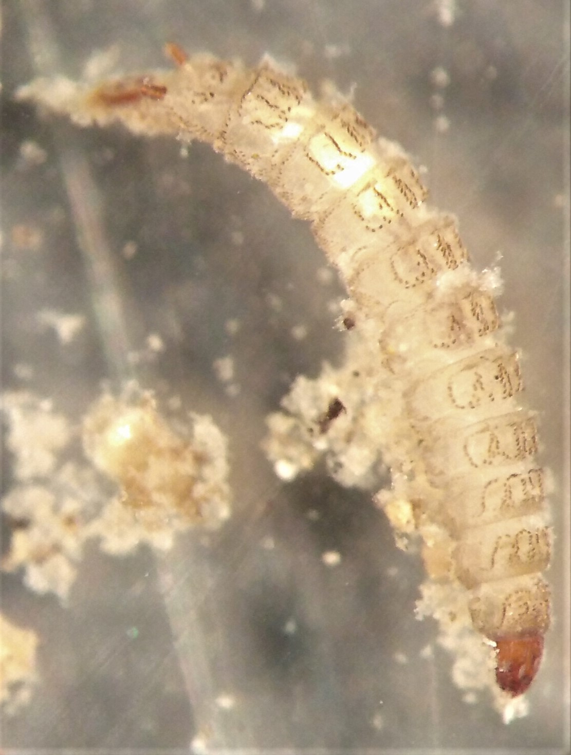Io penso che si tratti quasi certamente di una larva eucefala di Nematocero. Escluderei gli Psychodidae, per vari motivi fra cui la mancanza di un'ulteriore segmentazione oltre a quella di base.