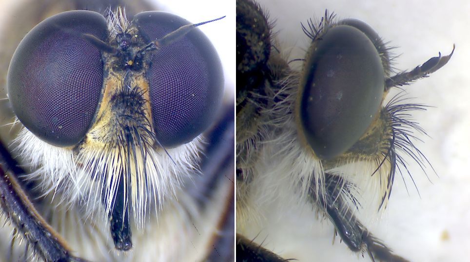 Arrivo ad Asilinae e mi perdo intorno a Machimus/Tolmerus. Dal vivo (non vi è cossispondenza sulle foto di dettaglio) sia nel maschio che nella femmina la superficie esterna delle tibie prossimali era di colore rosso con intensità mazzima in prossimità del ginocchio.
