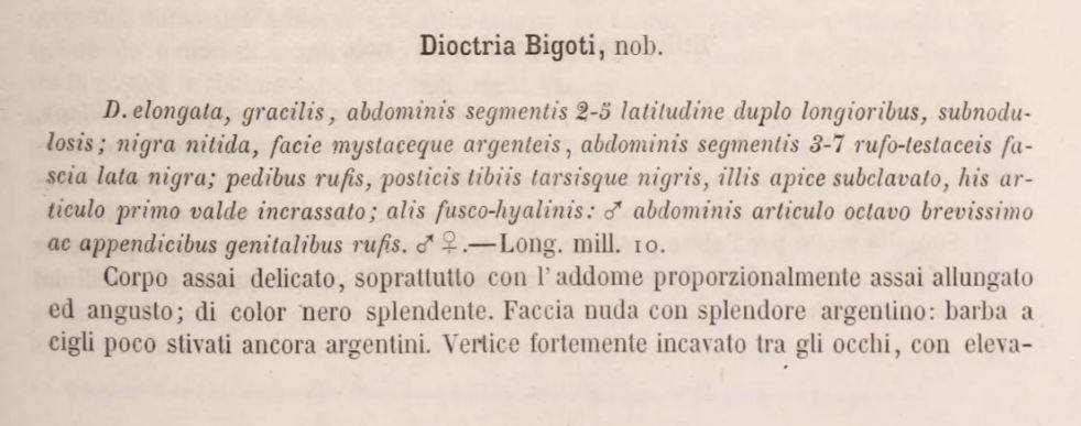 come spesso nelle descrizioni ottocentesche è parecchio vaga, corrisponde grossolanamente al mio esemplare ma sarebbe applicabile a diverse altre specie, comprese D. bicincta e D. linearis. Sarebbe più utile una ridescrizione più moderna, magari corredata da illustrazioni.