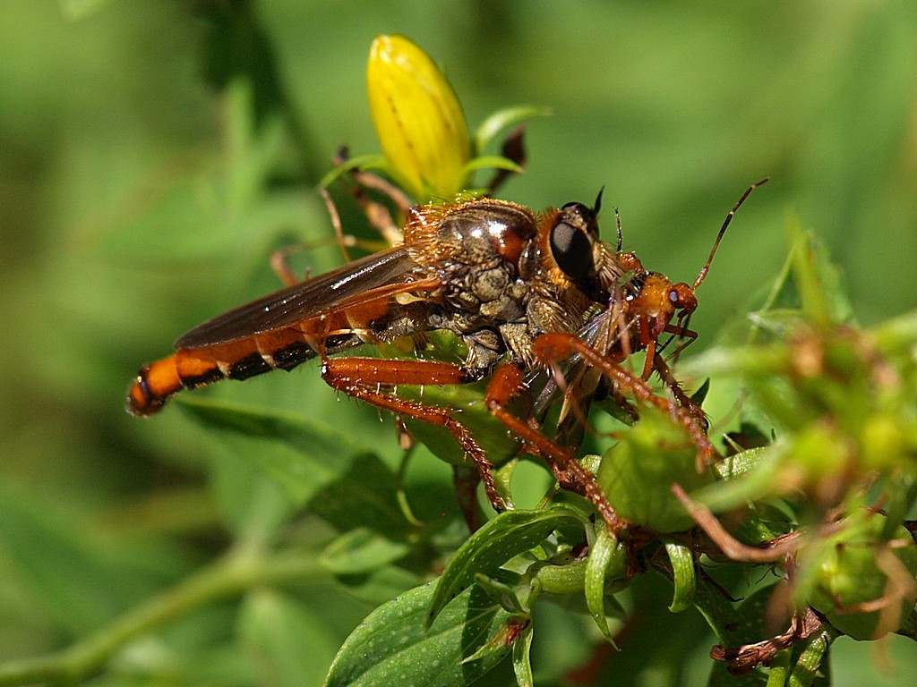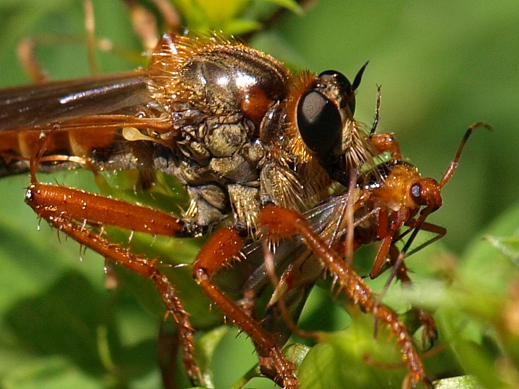 Un asilide dall'aspetto meno comune del solito, intento a fare ciò che di solito fanno gli Asilidi: mangiare.