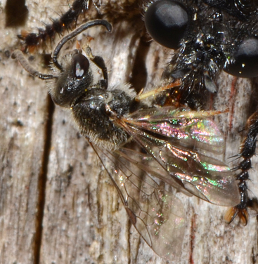 L'asilidae sembrerebbe una Laphria sp., l'imenottero è un Halictidae, un maschio di Halictus o di Lasioglossum. |