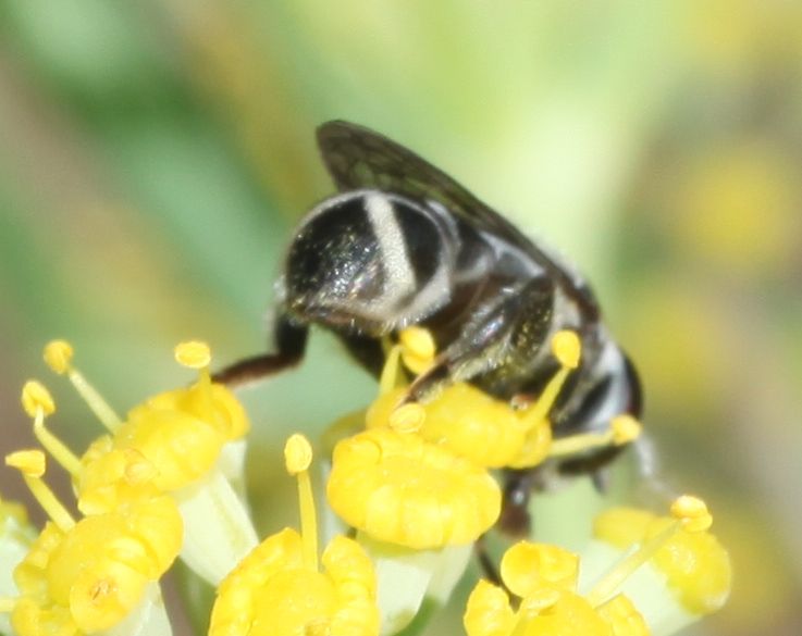 Unico sul finocchio selvatico tra una folla di E. sulcitibius e di E. consimilis.