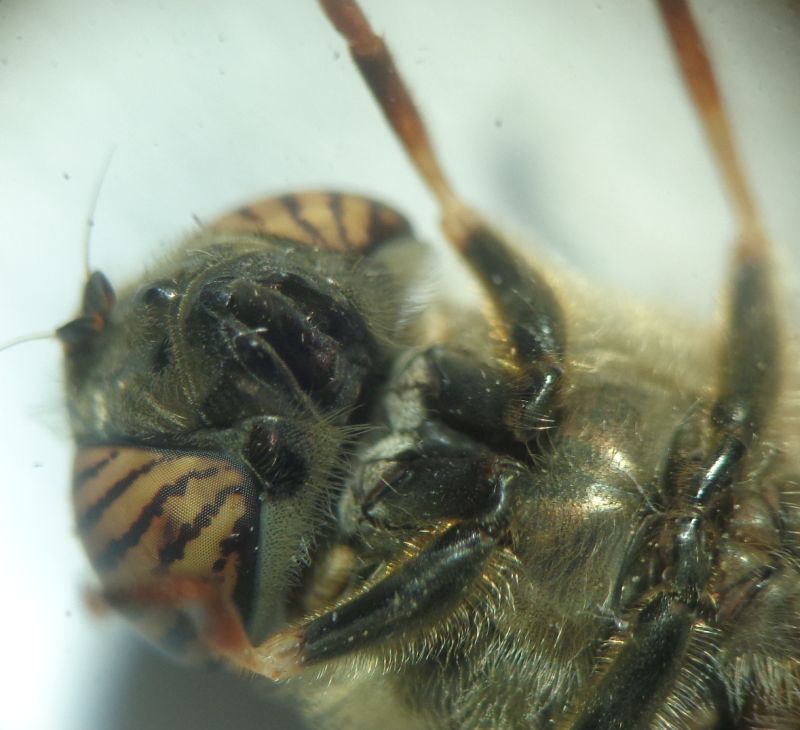 Preso poche ore fa sugli ultimi fiori di edera (assieme a un'altra specie che posto domani); arista nuda. Lo posto subito visto che le fasce degli occhi sono visibili. A richiesta altri dettagli in seguito.
