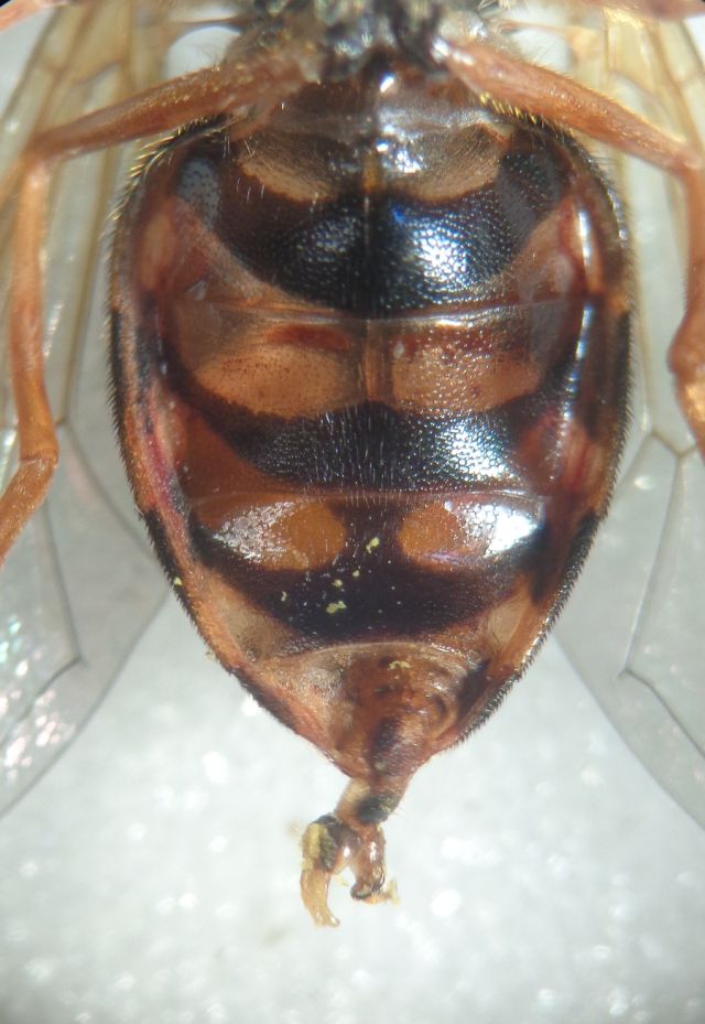 Ciao Carlo, grazie ma avendo trovato le chiavi che citi (credo) ho provato a percorrerle e arriverei a Chrysotoxum intermedium del punto 34; dal punto 1 arriverei al 29 considerando il 3° art. antennale + lungo di 1°+2° e da lì, attraverso i lunghi peli dello scutello, tergiti non dentati, colore sterniti e aspetto di mesoscuto e 2a cell. discale (con striscia priva di microtrichi). Posto due foto in cui meglio si evidenziano le antenne e lo scutello; dimmi se concordi. Le prime foto mal si prestano a valutare le lunghezze relative degli antennomeri. :hi: