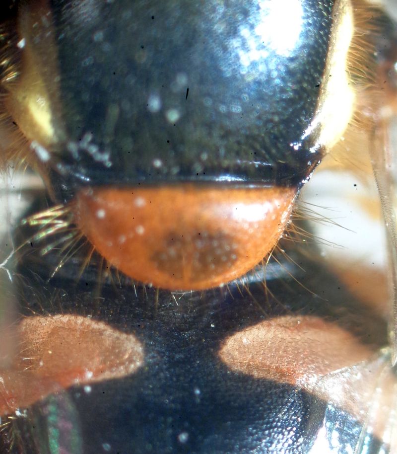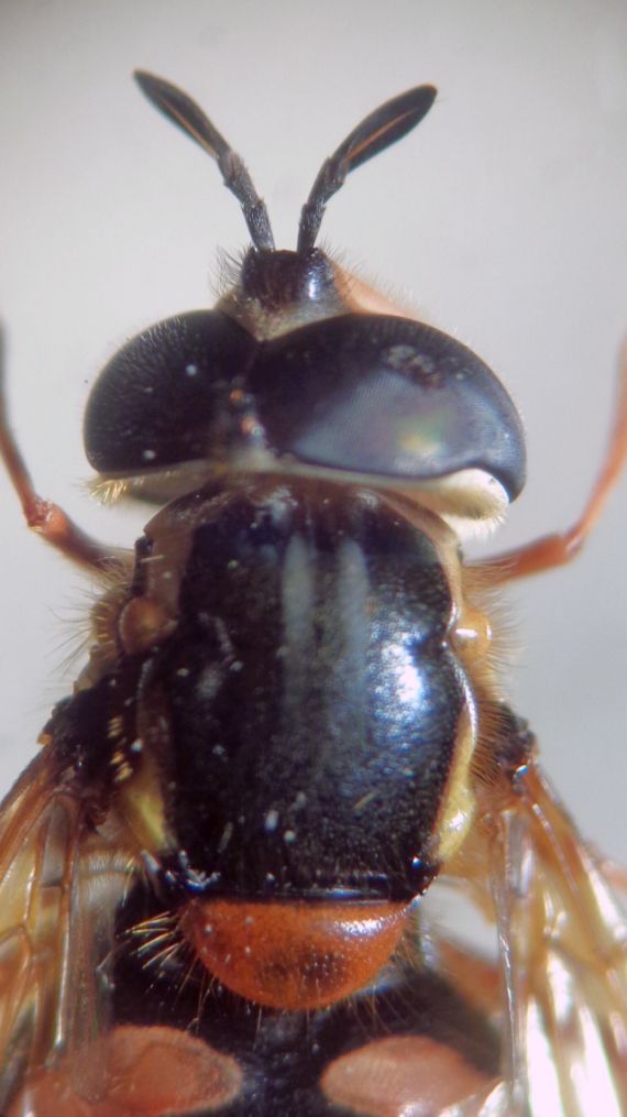 Al solito, il problema è sforzarsi di tirar fuori qualcosa da una o poche foto. Un conto è disporre dell'insetto e poterlo rigirare come vuoi magari sotto un binoculare, e un altro ragionare su quello che passa il convento. Le tue nuove foto aggiungono dettagli poco chiari nelle precedenti ma decisivi nelle chiavi. Io avevo giudicato la lunghezza del terzo antennomero circa uguale a quella dei primi due insieme, e la lunghezza dei peli sullo scutello non maggiore di metà altezza dello scutello, valutazioni chiaramente smentite dai dettagli aggiunti. Sono d'accordo sulla tua conclusione.