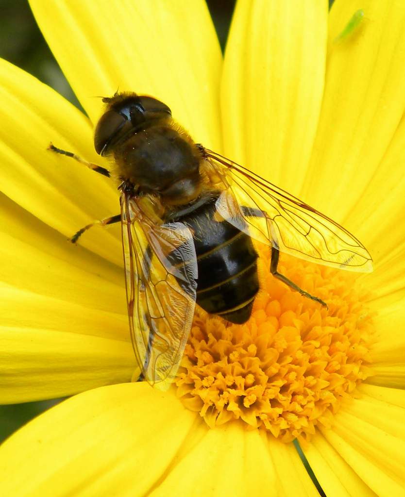 Confrontando questa fotografia con la nota tabella elaborata da Pietro Niolu per il genere Eristalis, alcuni caratteri visibili dell’esemplare fotografato mi portano a Eristalis tenax. Tuttavia, ho bisogno di una conferma perché l’ala non “ombrata in centro-costale” mi lascia dubbioso.