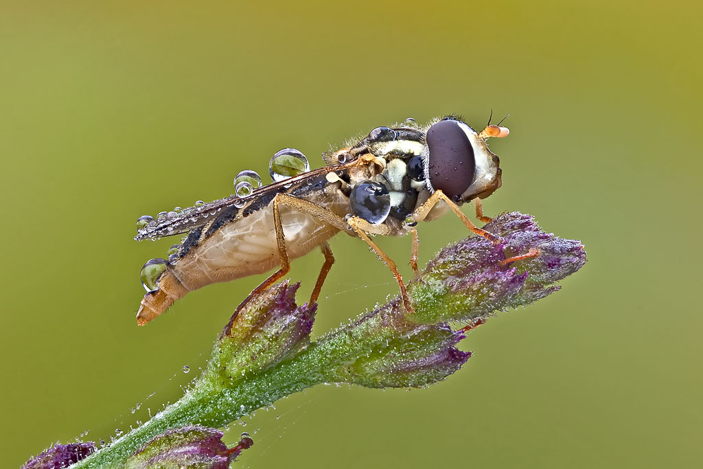 Beh, tanto agitata (visto che è una femmina) non doveva essere, se sei riuscito a fotografarla così. Peccato, con quella striscia bianca sul lato del torace poteva essere una determinazione non impossibile. Ho provato a confrontarla con gli Helophilus, ma non ci siamo.