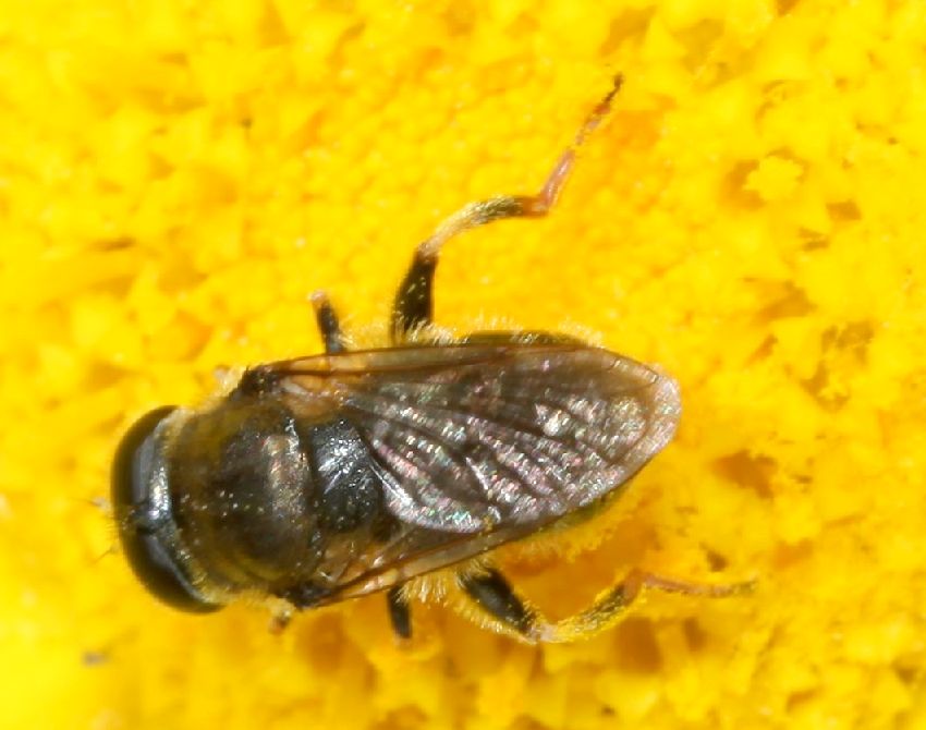 L'anno scorso l'ho incontrato sia in primavera (sulle Asteracee) che in autunno (sui fiori di Inula viscosa), direi che è il Merodon più comune nella mia zona. Taglia 9 mm. (negli altri esemplari tra 8,5 e 10 mm.)