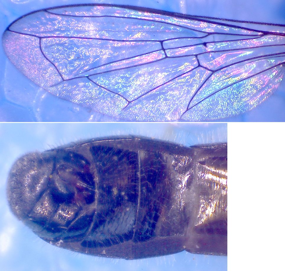 Per quanto ho potuto verificare questa è la variante priva di colarazione rossa. Esitono, a mio avviso, due varianti che convivono abitualmente negli stessi siti una con colorazione uniformemente bruno-dorata sia sul torace che sull'intero addome e l'altra che ha i primi due tergiti neri e gli altri 3 più o meno rossi.