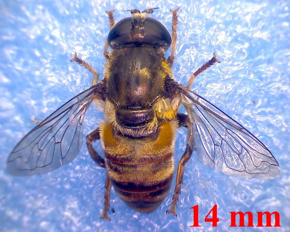 Sfumerebbe anche l'ipotesi di Merodon flavus, i caratteri della femmina non corrispondono!