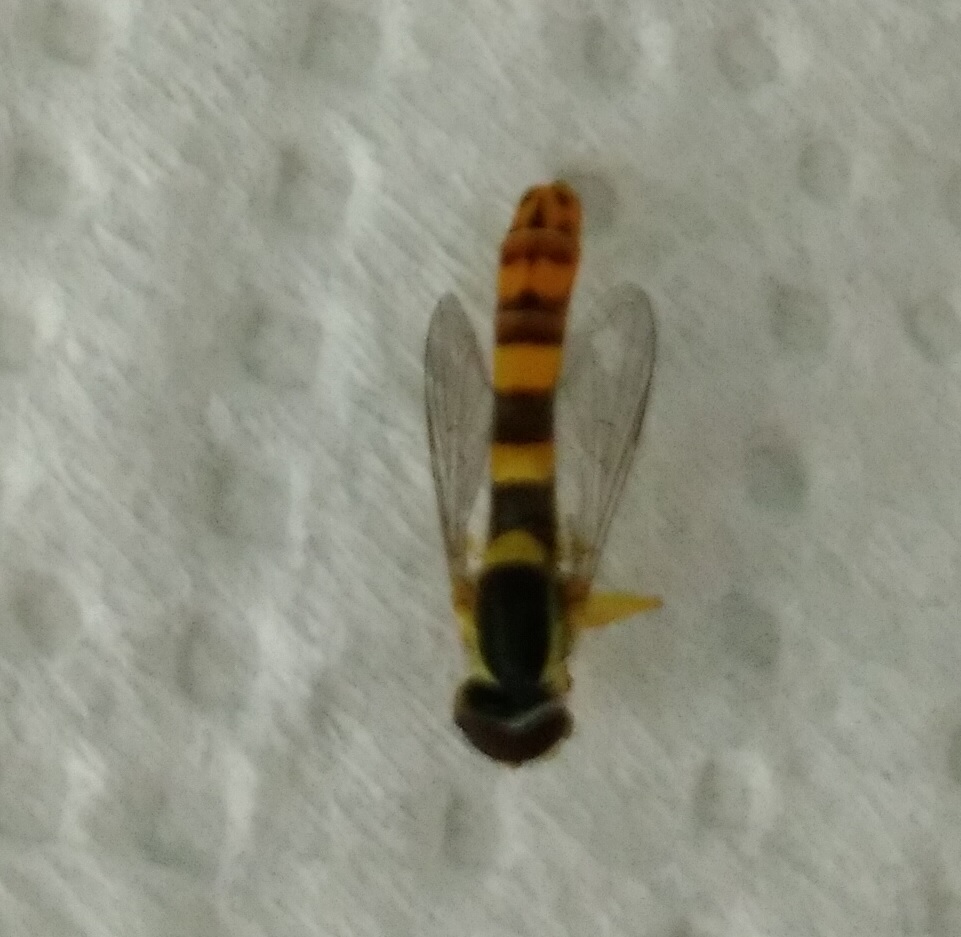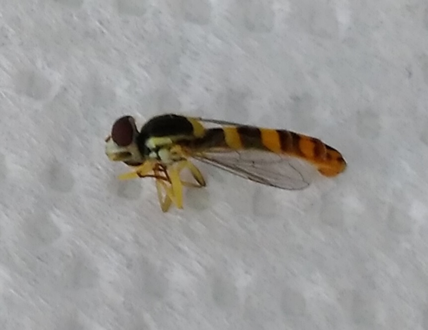 Dovrebbe essere Sphaerophoria scripta (Linnaeus, 1758), dato che l'addome è più lungo delle ali.