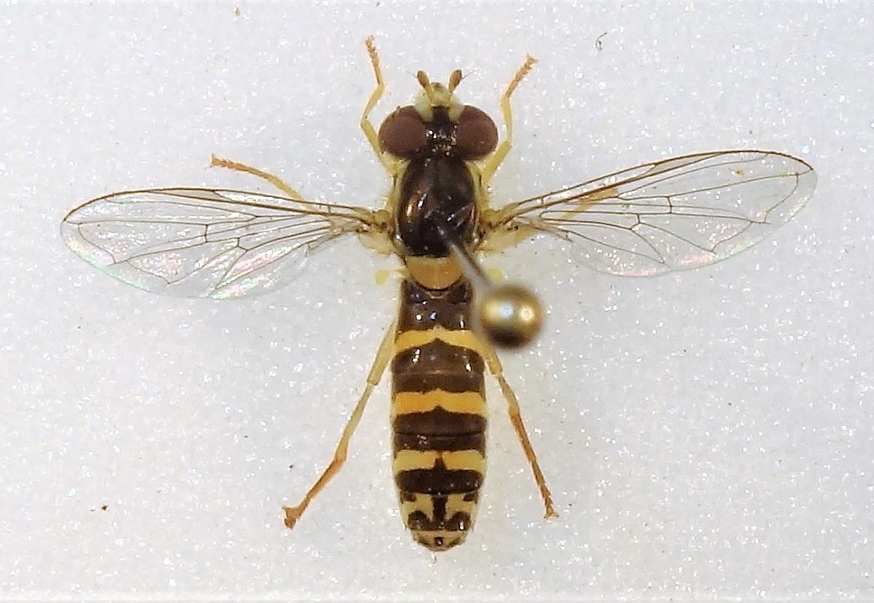 Il disegno addominale e la banda frontale sono compatibili con Sphaerophoria scripta, d'altronde possiamo tranquillamente escludere l'unica altra Sphaerophoria presente nel territorio sardo cioé la Sphaerophoria rueppelli.