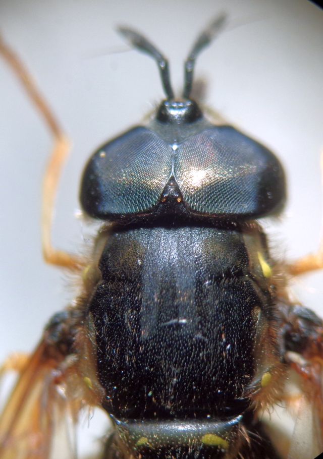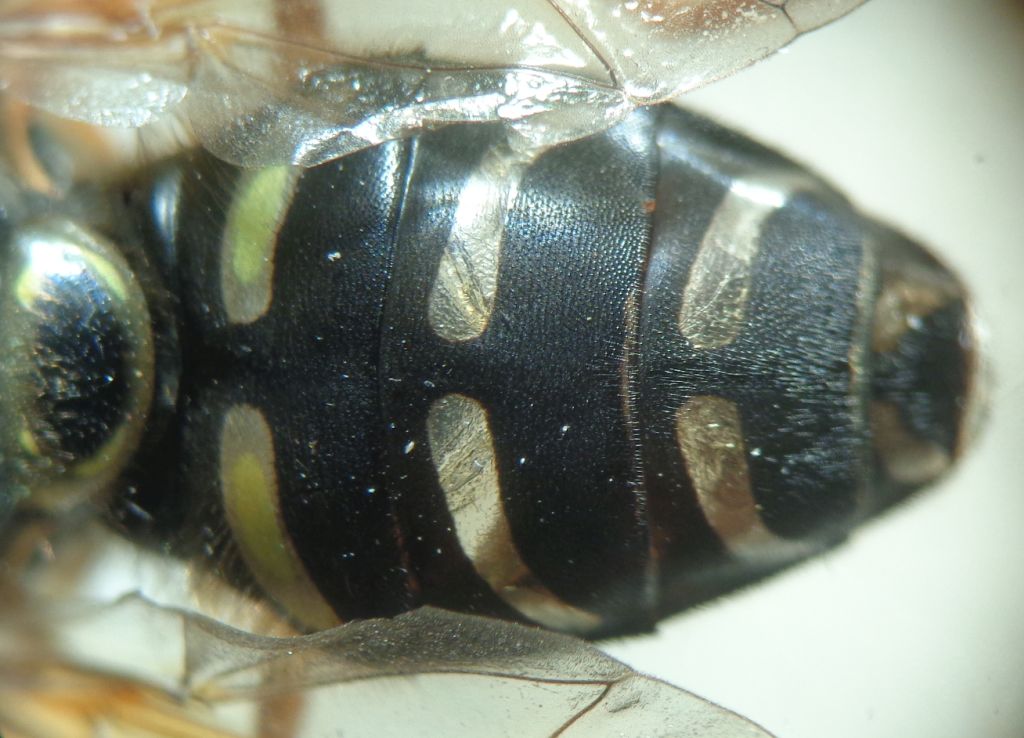 Potrebbe essere un maschio di Chrysotoxum festivum (Linnaeus, 1758). Per esserne sicuri occorrerebbe una foto della parte ventrale dell'addome dove si possano apprezzare i contorni degli sterniti, una foto laterale dell'addome dove si veda il colore di tutto il margine e una foto dello scutello che consenta di valutare la lunghezza dei peli (c'è una variante delle leggi di Murphy che vale in questi casi: non importa quante foto fai per rendere possibile una determinazione, ne manca sempre qualcuna).