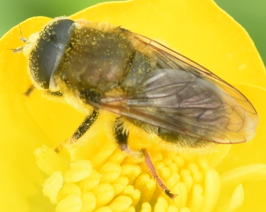 Questa è decisamente meglio, ed è chiaro che gli occhi sono scuri e privi di macchie. In più si vede abbastanza bene la nervatura alare, altro dettaglio che dà ragione a Mauro quando esclude che possa essere Eristalinus e rafforza l'ipotesi Merodon sp.