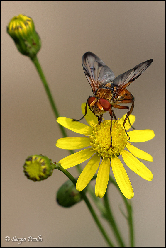Ancora diversi impollinatori su fiori di Senecio inaequidens. Questo dittero mi sembra un Tachinidae, penso del genere Phasia. Si riesce a determinare la specie? Grazie.
