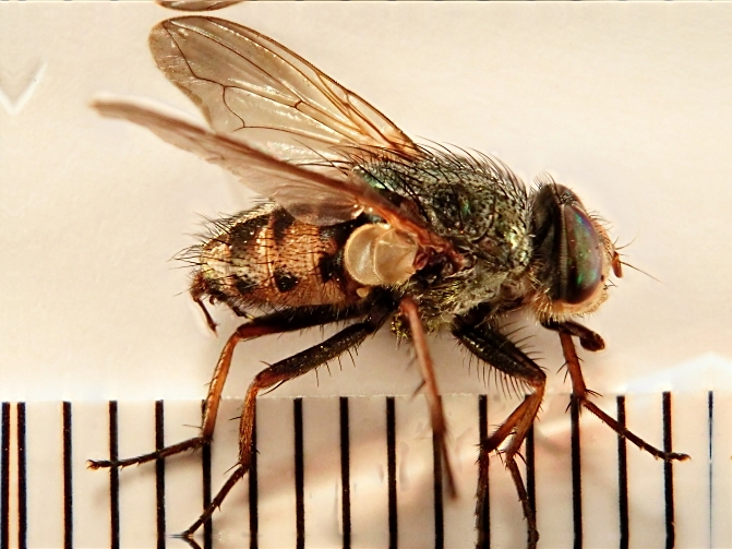 Questo per me è troppo difficile. Potrebbe essere un Tachinidae, ma senza una buona visibilità di alcuni caratteri non sono in grado di affermarlo con sicurezza. Ammesso che sia un Tachinidae, in Italia ce ne sono più di quattrocento specie quindi la strada poi sarebbe ancora lunga. Le cose non miglioreberebbero molto se fosse un Muscidae.