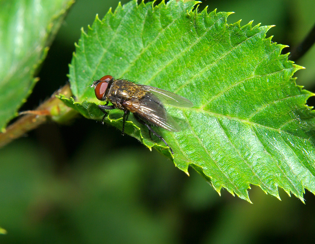 Maschio di Pollenia sp. (Calliphoridae), con buona probabilità Pollenia rudis.