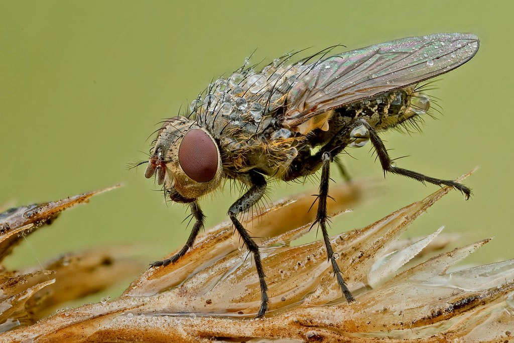 Le tue foto come sempre sono quanto di meglio si può fare; dal punto di vista della determinazione del soggetto non è detto però che questo sia sufficiente. Qui il tuo soggetto è 'ibernato'; quindi è rimasto immobile per tutta la sequenza dello stacking, ma è ricoperto di rugiada. L'immagine è bellissima, ma non è facile orientarsi con la chetotassi. Anche a me sembra una Pollenia, temo però che non sia possibile dire qualcosa di più, a meno di non trovare qualcuno che le riconosce tutte a vista...
