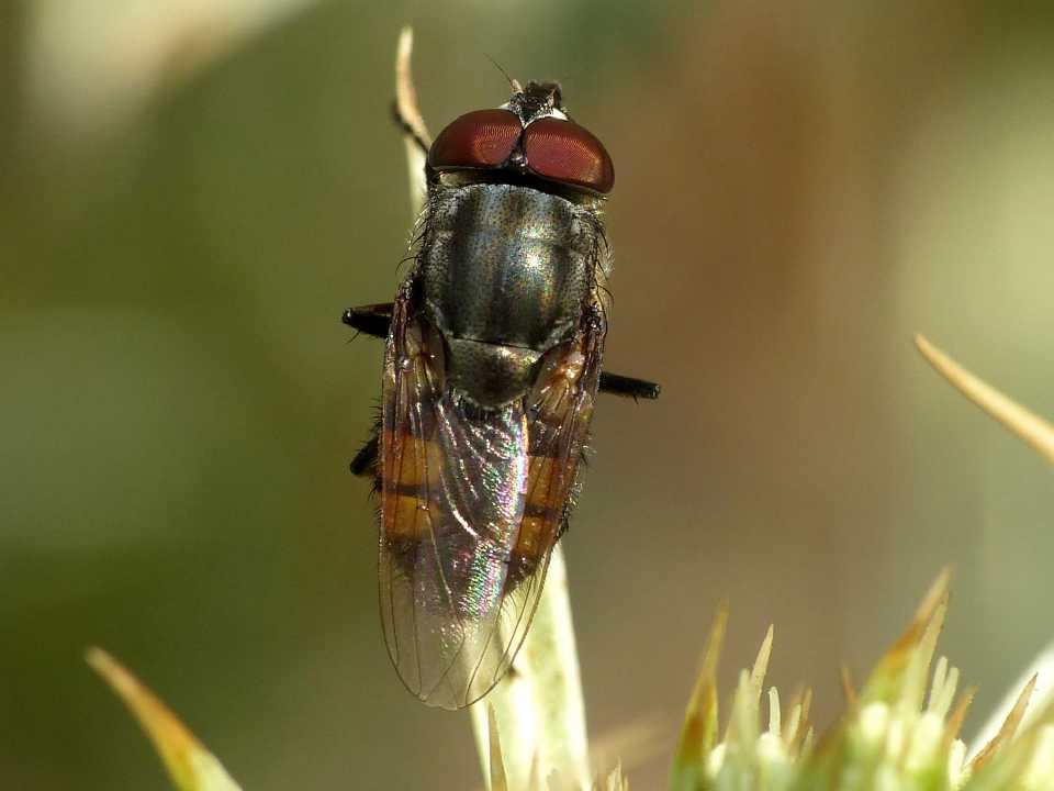 Somigliava ad una Stomorhina lunata, a parte che era un po' più piccola, e si comportava allo stesso modo. Però ha gli occhi rossi e le fasce nell'addome molto gialle ....