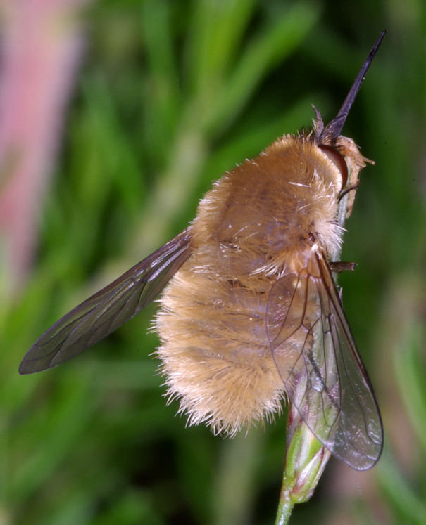 Grazie Gian, aggiungo una visione più dorsale, che mostra l'ala meno inclinata.... anch'io pensavo a Bombylius, ma di molte delle specie del genere non ho mai visto immagini ne letto descrizioni.