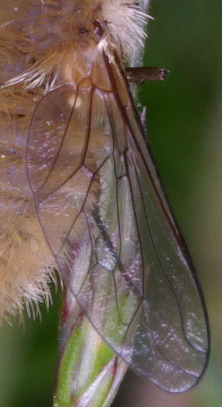 In effetti, la posizione della radio-mediale è piuttosto dubbia. In rete ci sono delle chiavi di determinazione dei generi che fanno riferimento a bombilidi nordamericani e nordeuropei. In entrambe è utilizzata la posizione della radio-mediale in relazione alla cellula discale per distinguere Bombylius da Anastoechus e Systoechus. In pratica questi due generi hanno una posizione della radio-mediale più prossimale rispetto a Bombylius perciò le due cellule basali hanno la stessa lunghezza. Nella foto siamo proprio ai limiti dell'apprezzamento, io vedo la br appena più lunga della bm, ma sinceramente non ci metterei la mano sul fuoco basandomi solo sulla mia percezione. Quello che mi fa propendere per un Bombylius sono due considerazioni:
