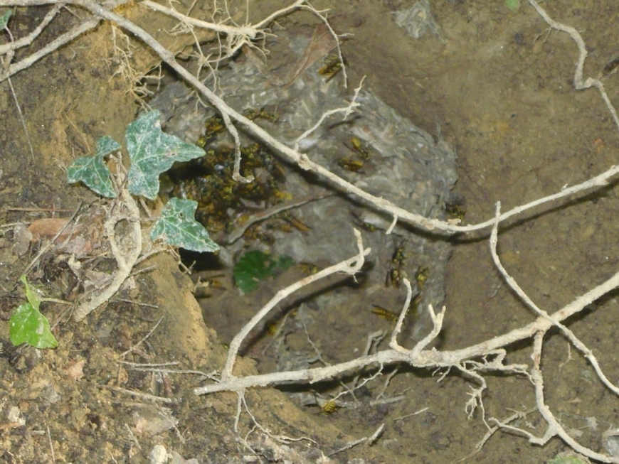 Ciao Fabio Anche quest'anno mi è ricapitato un nido sotterraneo completamente sventrato e come giustamente Augusto aveva intuito quì viewtopic.php?f=49&t=13269&hilit=nido+vespe perchè non pensare al tasso o a qualche quadrupede vorace (volpe,martora & co.)...anche se devo dire che il tuo buco sembra meno sbranato dei miei