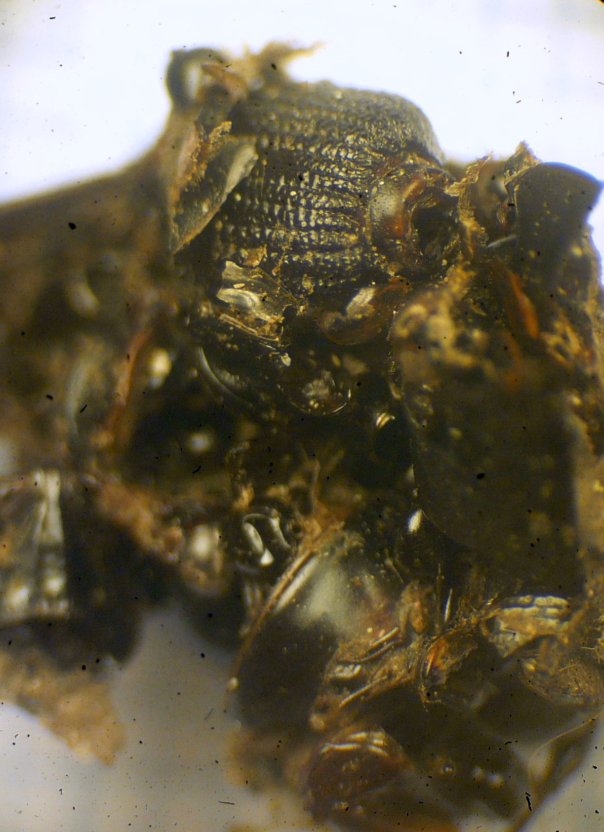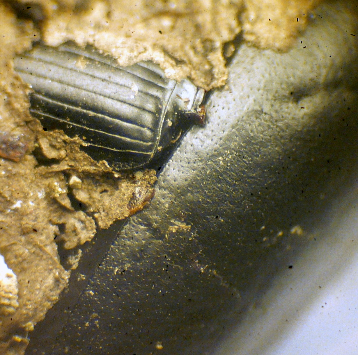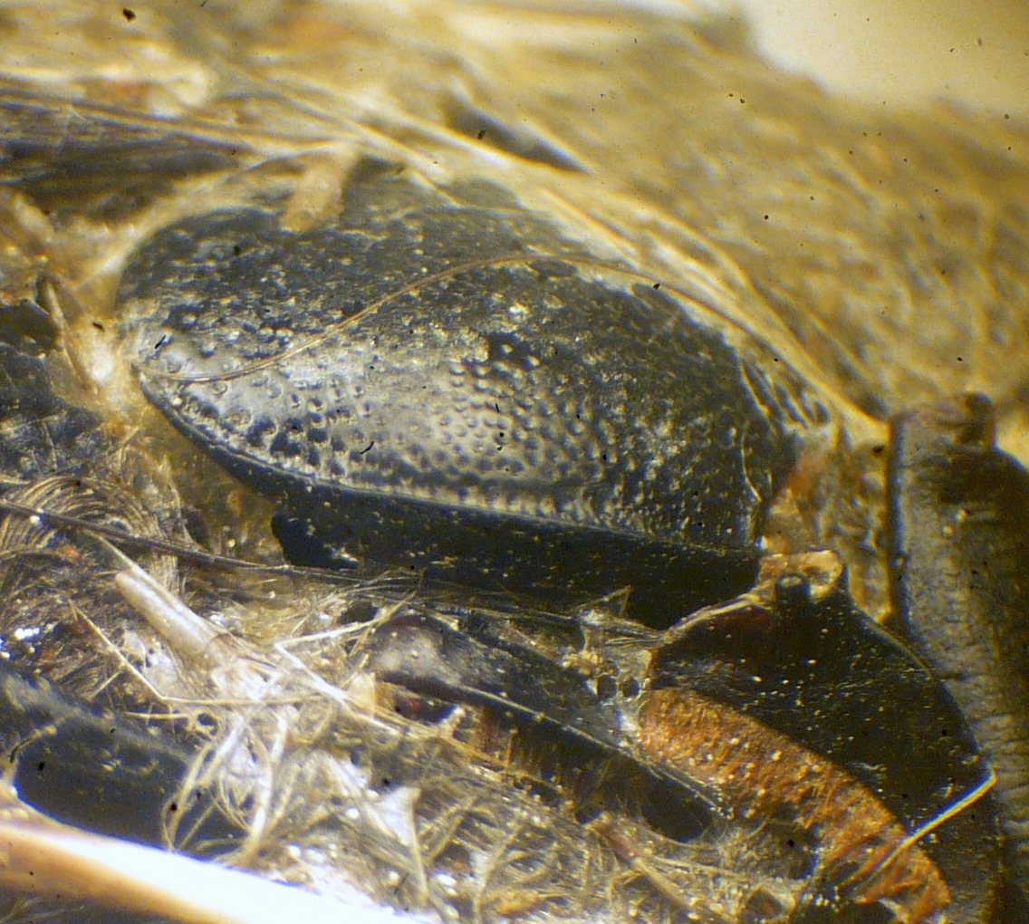 Si intravede un elitra granulare con sfumature verdi