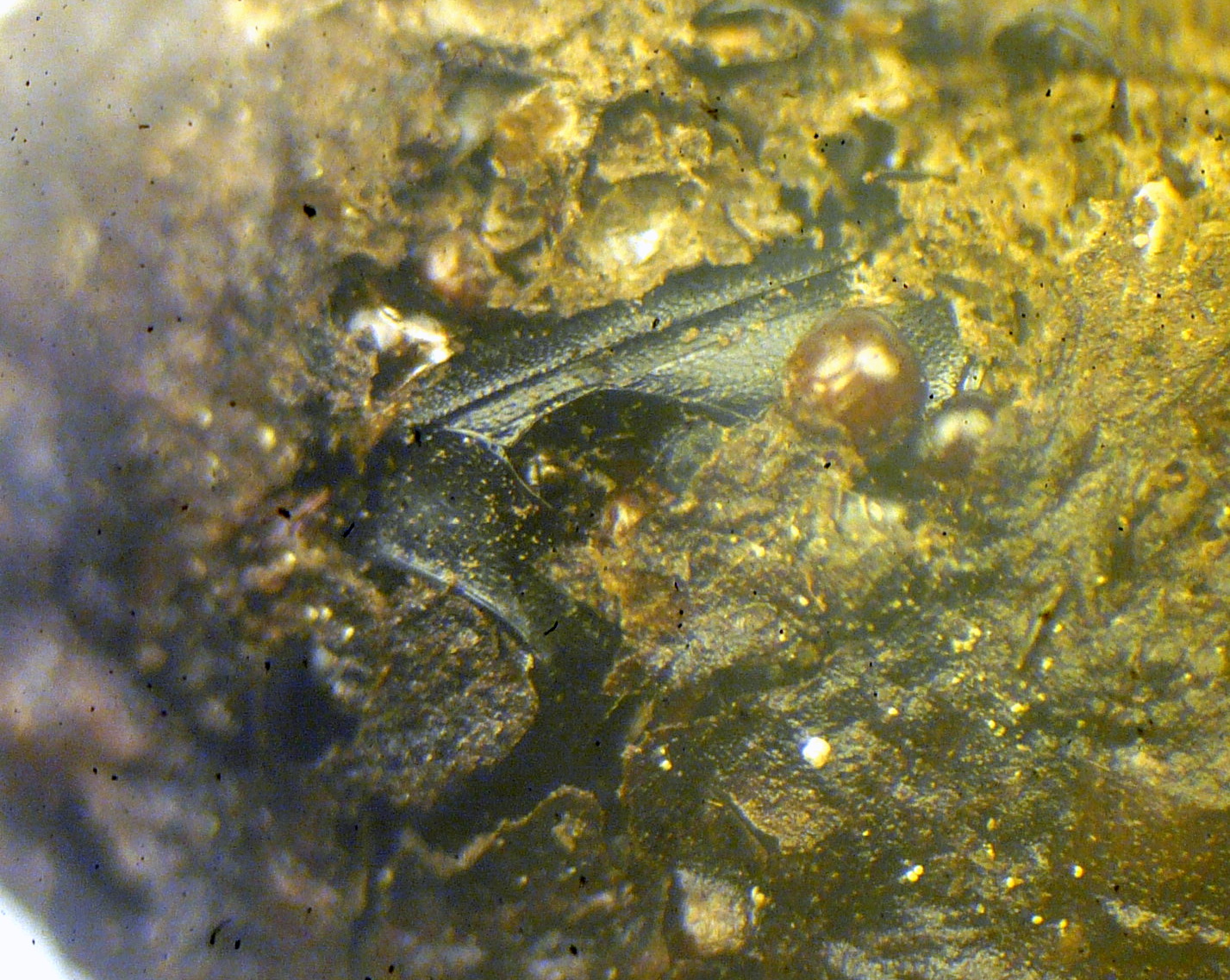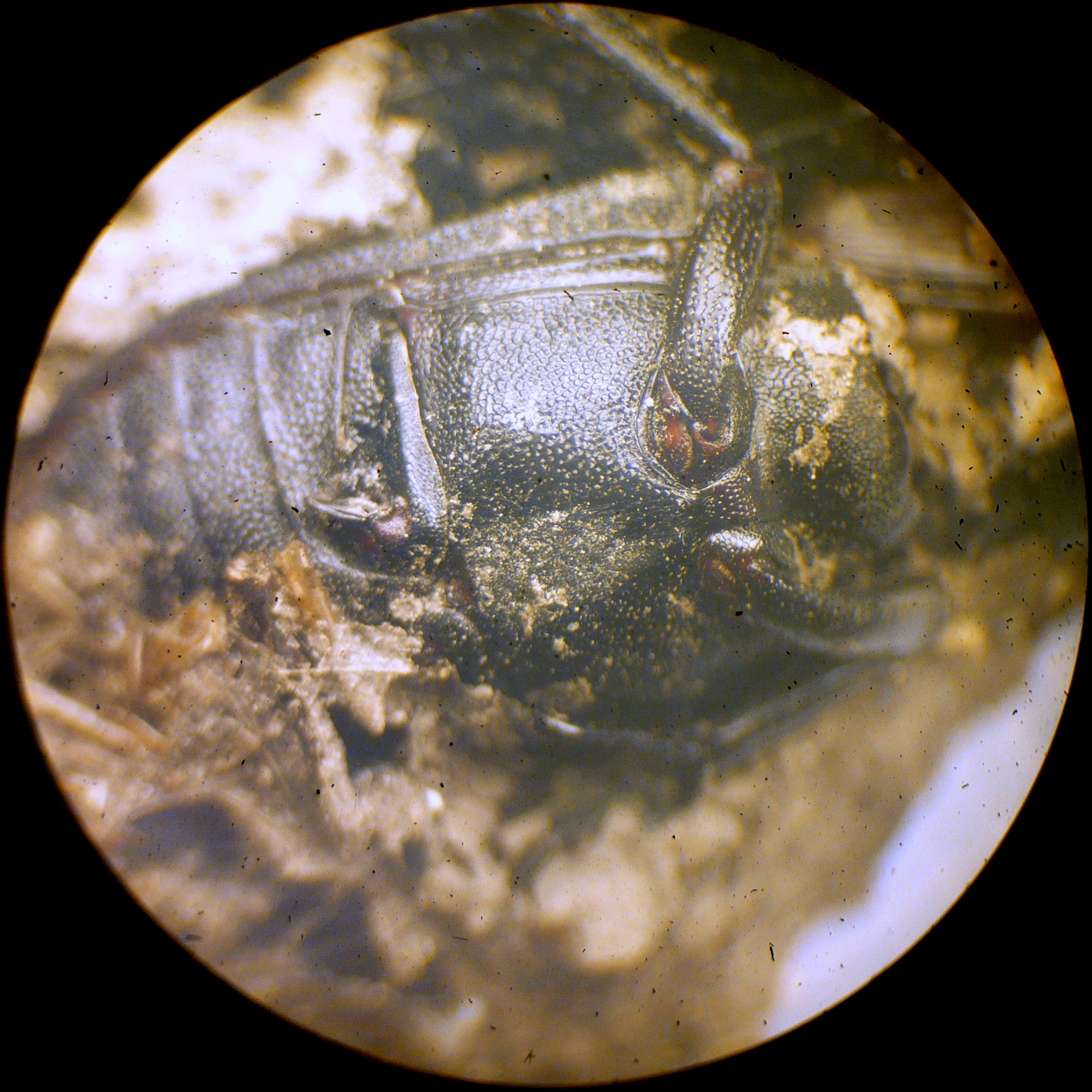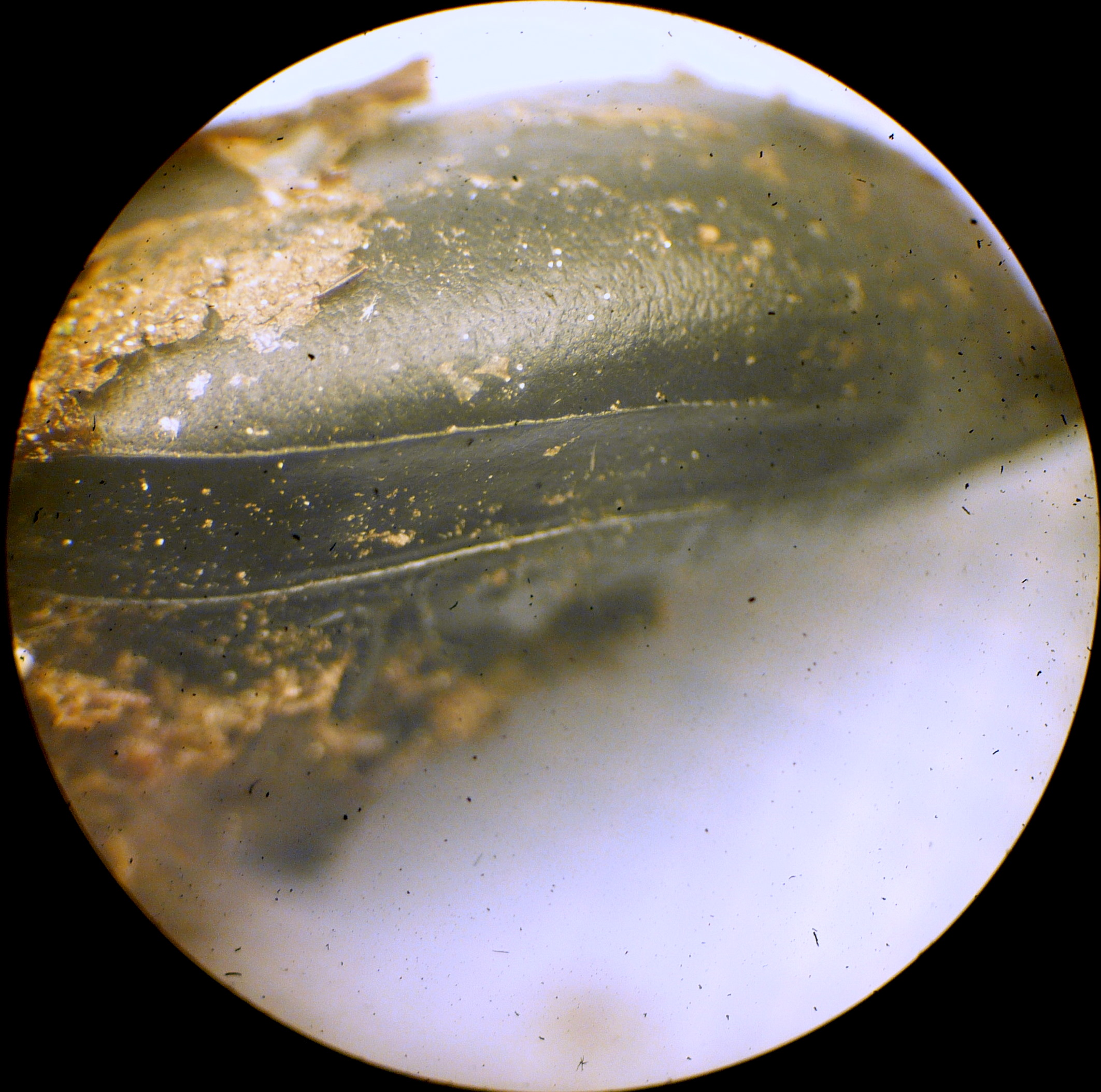 Si intravede un elitra granulare con sfumature verdi