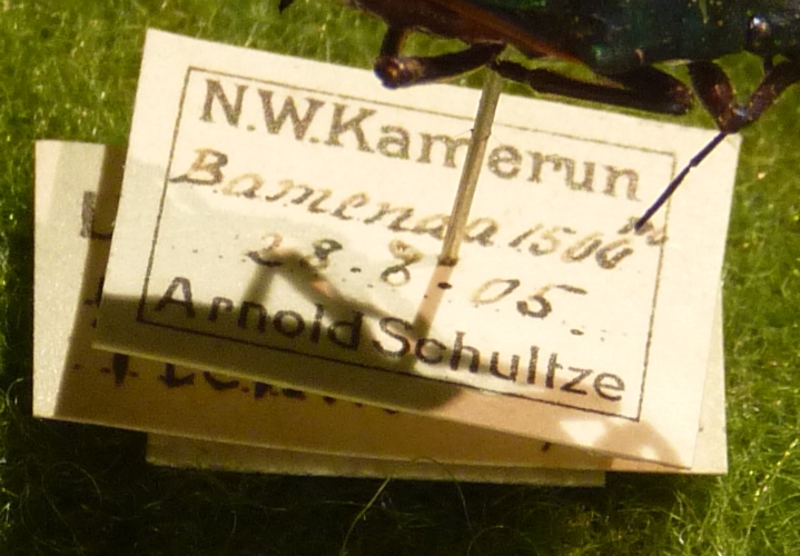 Le etichette degli insetti in questa collezione erano molto difficili da vedere sotto gli insetti e la maggior parte di essi non menzionava la località o il nome della specie, ma solo la collezione di riferimento e un codice. Pertanto abbiamo solo l'aspetto dell'insetto per poterlo identificare.
