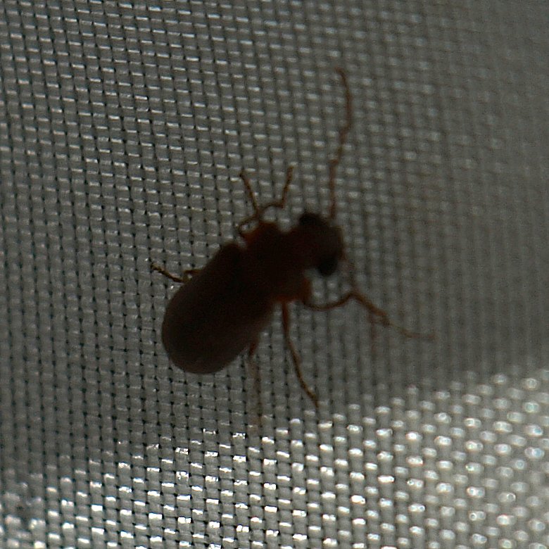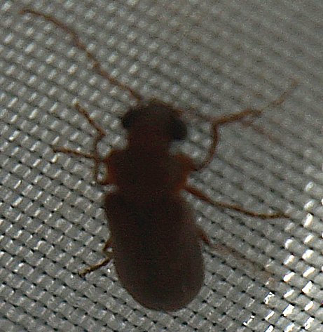 3 - ormai riconosco i coleotteri più da come si muovono che dalla forma. Prima camminava come un Chrysomelidae, ma più veloce, poi ha preso un'andatura da Carabidae in fuga, e poi è volato via di colpo. Gli Anobiidae di solito, o se ne stanno fermi, o quando partono caracollano via, cadendo quasi sempre, o partono in volo, per quanto ricordo.