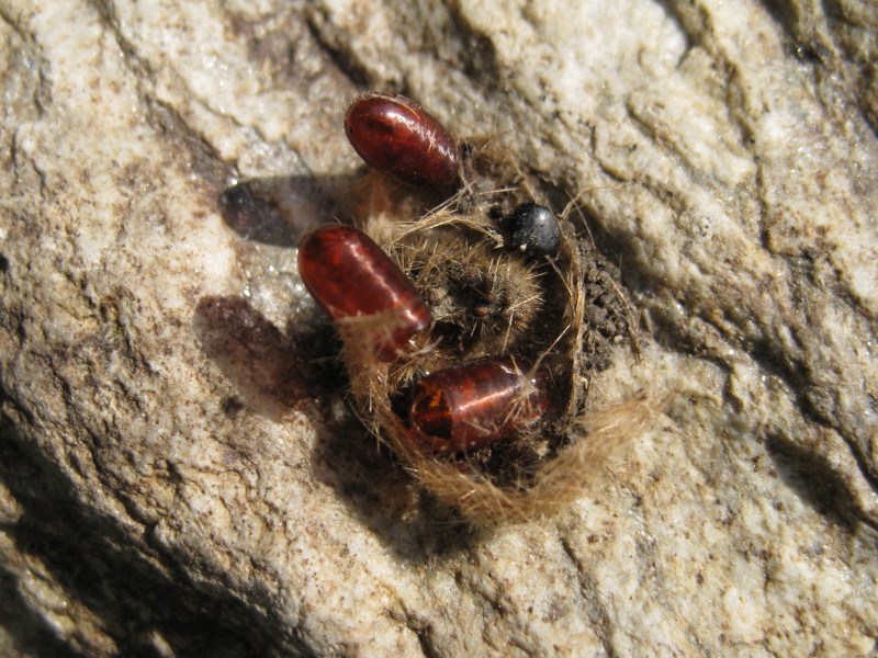 Le tre crisalidi sono certamente del dittero che aveva parassitato il bruco ospite, che potrebbe essere stato di un arctide o di un lasiocampide o .....