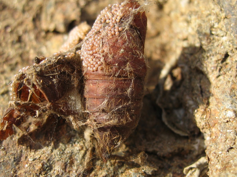 Nella buona abitudine di "riciclare", come si evince dalla foto, quantomeno arriviamo secondi dopo gli insetti. Una vecchia crisalide è stata riciclata come supporto per le uova.